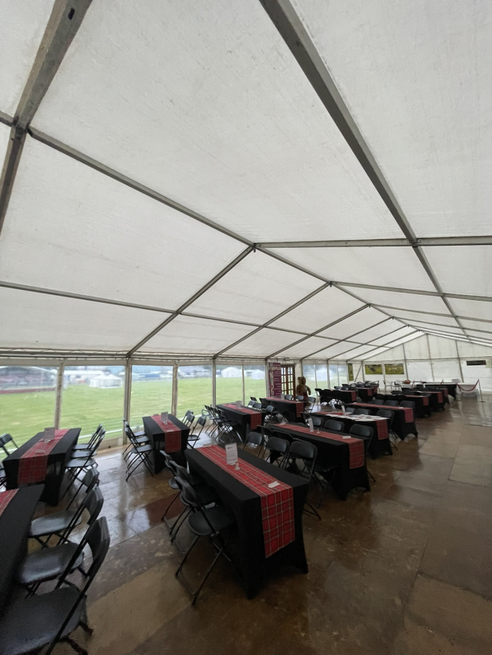 The patrons’ marquee provides respite from the bustle of the main public spectator area; shelter from any extremes of weather (if needed!); and an uninterrupted view to the centre of the Games’ arena. It is furnished with tables and chairs and offers complimentary coffee and tea, plus a licensed bar and dedicated toilet facilities.